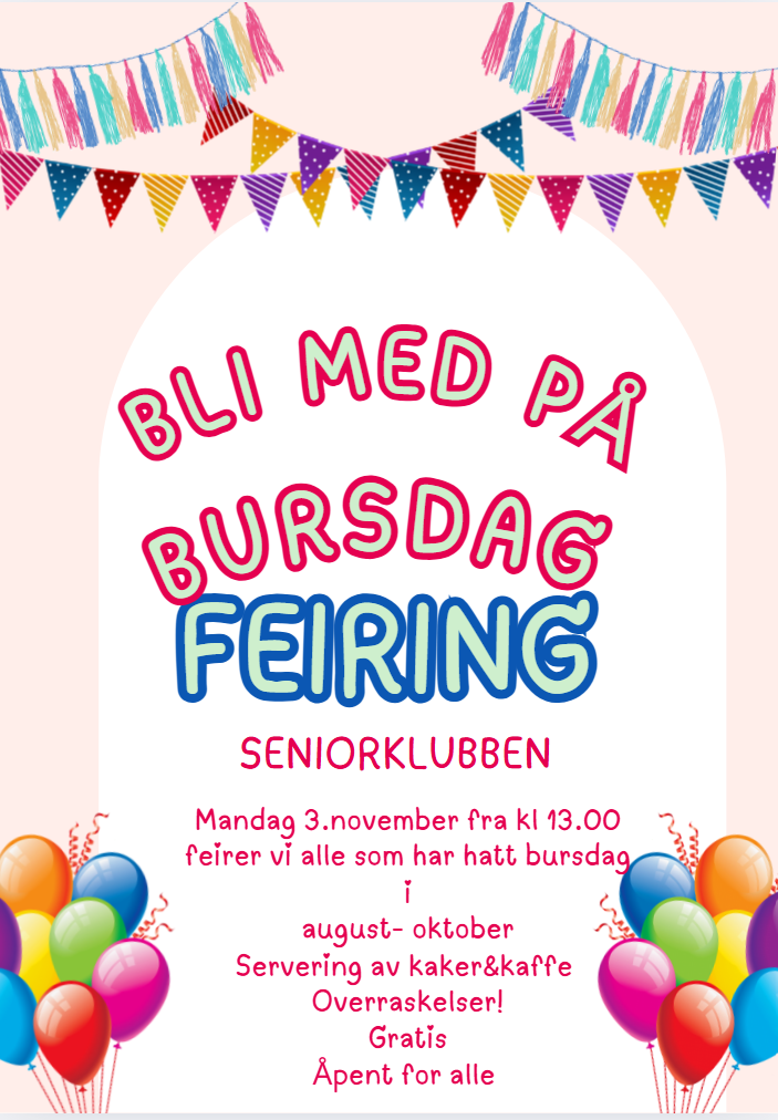 Vi feirer månedens bursdag til senior og ungdom som har hatt bursdag -BLI MED !